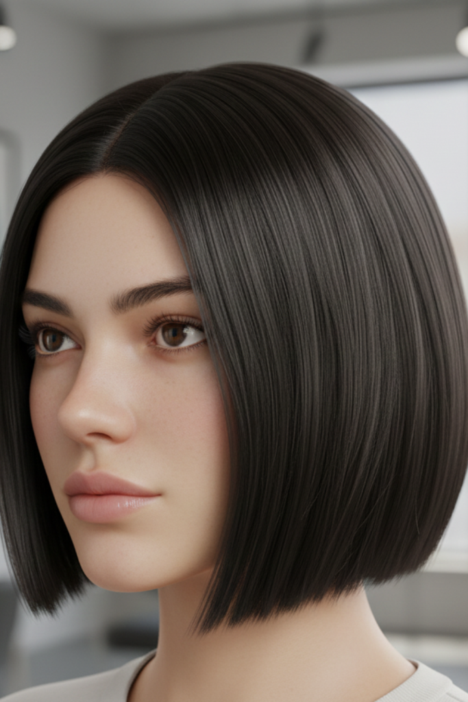 Clean, sharp, and confident, the blunt bob remains a timeless power haircut. Cut evenly at the chin or jawline, it creates a strong silhouette that highlights facial structure.