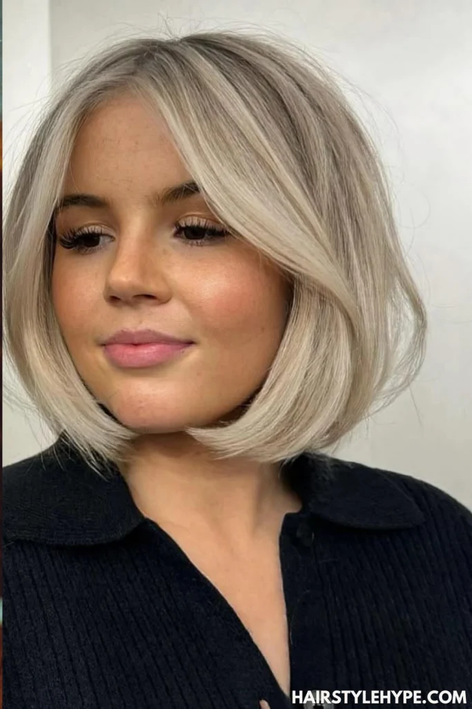 A sleek, chin-length bob in a neutral blonde tone creates the ultimate polished look. It’s timeless, easy to maintain, and flatters oval and heart-shaped faces.